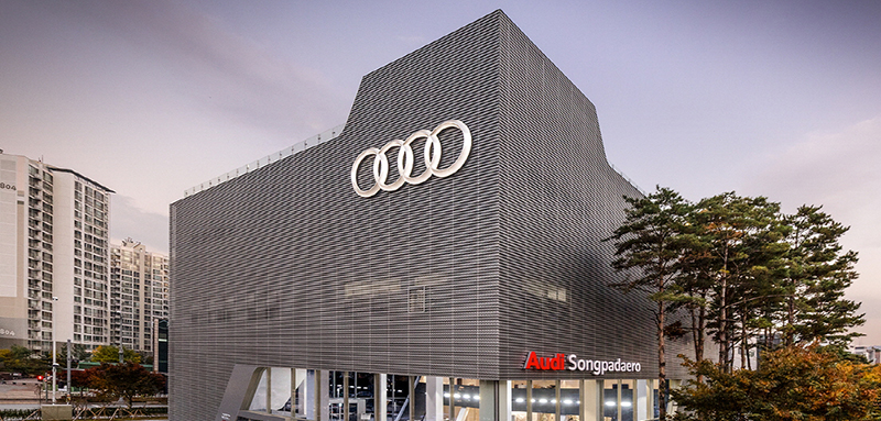 - 기존 아우디 용산 전시장 및 서비스센터, 연면적 2,744㎡의 지하 2층, 지상 4층 규모 건물로 신축 이전 오픈